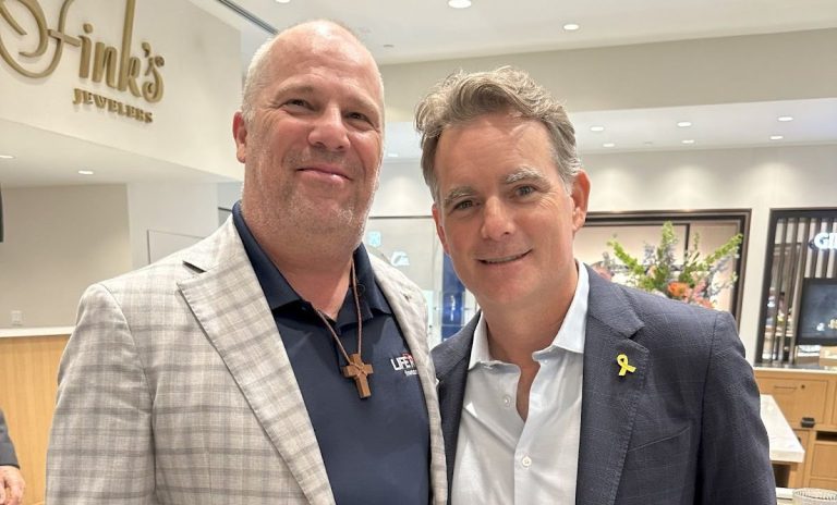 Pictured: Kelly Woolwine with Jeff Gordon at 2025 fundraiser at Fink’s Jewelers in Charlotte, NC.
