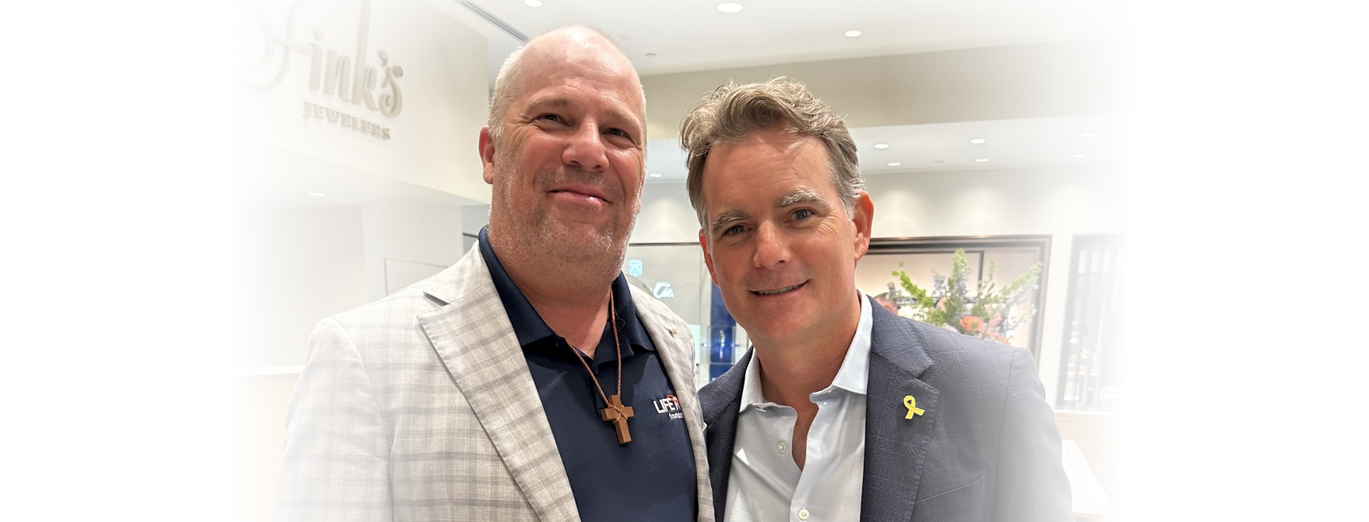 Jeff Gordon, a four-time NASCAR Cup Series champion and one of the most influential figures in motorsports, known not only for his success on the track but for his leadership and philanthropic impact off of it. He joined us in the Fall 2025, at an intimate, evening hosted by Fink’s Jewelers, where his presence helped elevate a powerful night in support of our mission of Fighting Kids Cancer.